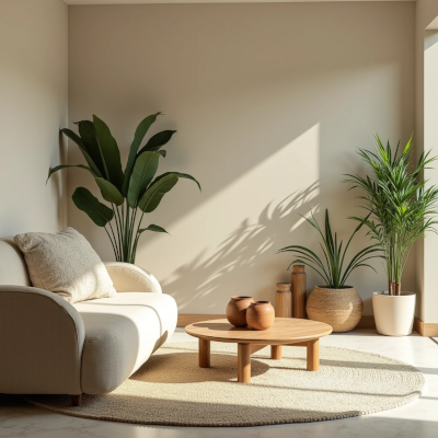 2. Cores suaves, formas orgânicas e materiais naturais